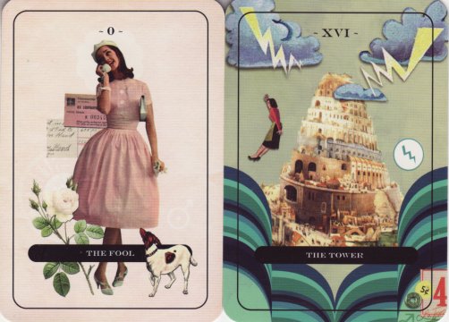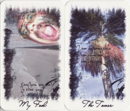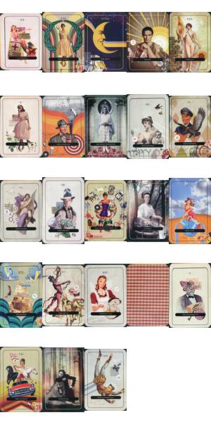 Garden Path : An Antipodean Tarot by Melanie J Cook. Australia, Self-Published, 2004. 22 cards 115x65mm. Collaged images of animals, humans, plants in interwoven layers, with some lines of text from a poem of the artist. Perfect condition. 0.1Kg. No 31 of an edition of 78, signed by the artist.