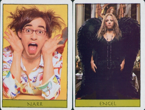 Cosmopolitan Cosmo's Love Tarot (German) by Nicole Beland, Cosmopolitan (Germany) 1999. 12 cards with German titles. Published with an issue of the German Cosmopolitan Magazine. As the artwork is the same as that of Cosmo's Love Tarot of August 1999 in the USA Cosmopolitan, it may be supposed that this was issued with the German Cosmopolitan of the same period. 12 cards 110x55mm.
