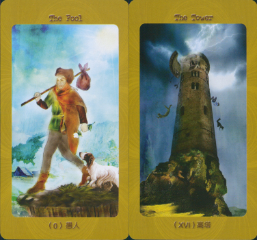 Elota 2 Tarot A Chu family. Self-published 2005. Photographs of various landmarks and architecture in Taipei. The Lovers card has a photo of the Lovers' Bridge, The Wheel of Fortune has the Miramar Ferris Wheel and the Tower is the Taipei 101 Tower block. 23 cards Majors only 120x70mm. Two versions of Judgement. Limited edition of 100. Long out of print, and difficult to find.